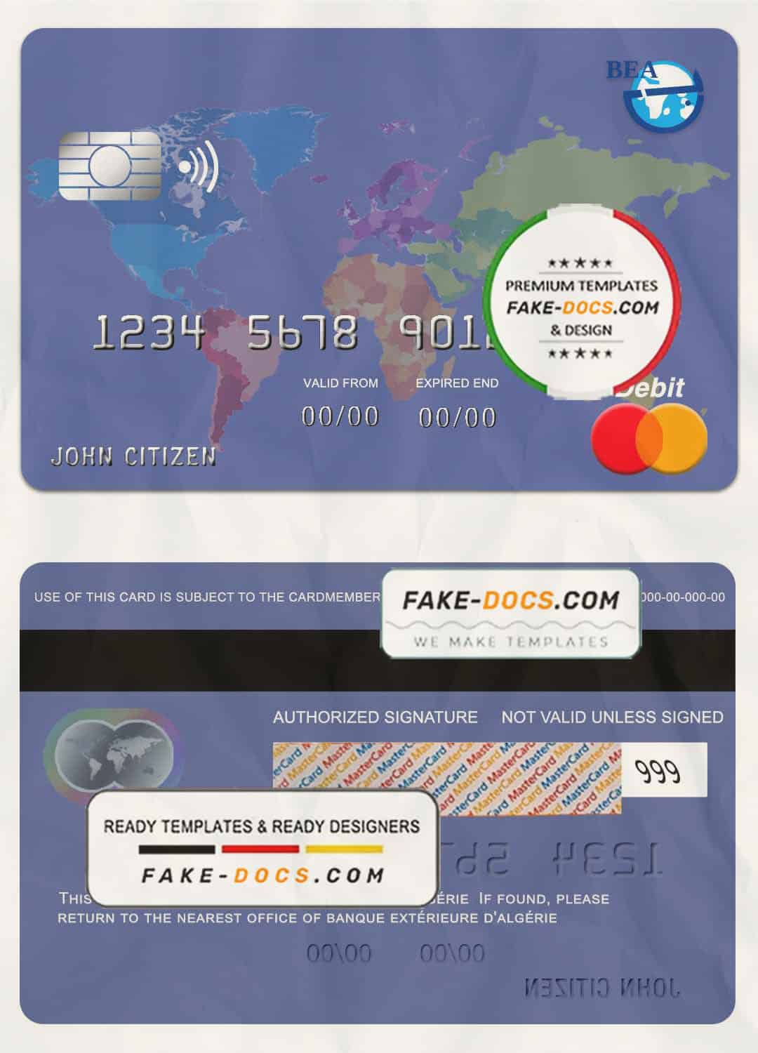 Algeria banque extérieure mastercard template in PSD format, fully editable