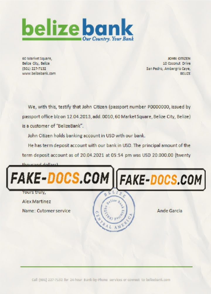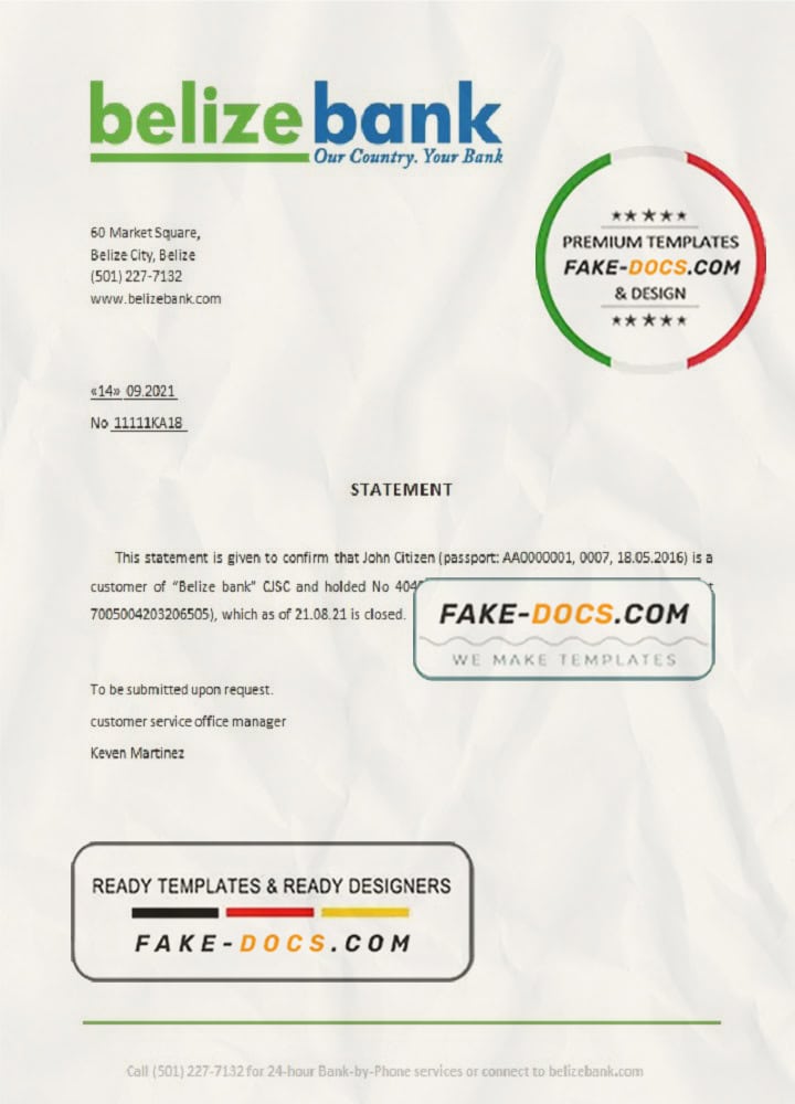 Belize bank statement template in Word and PDF format
