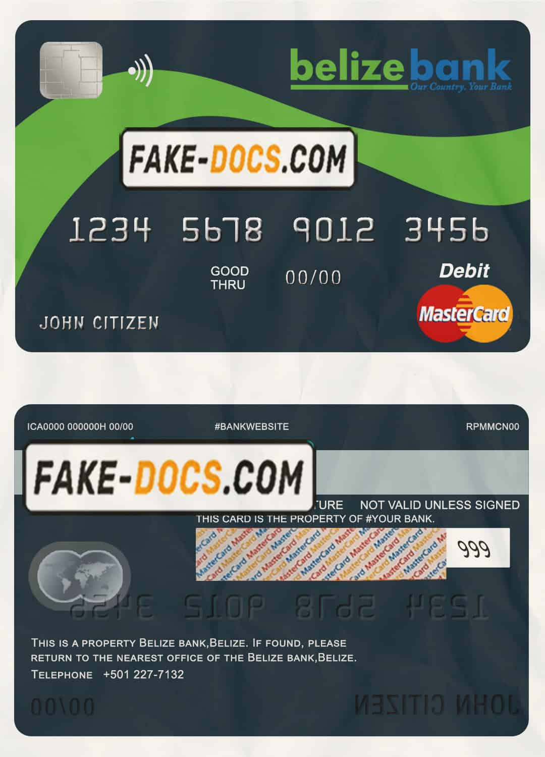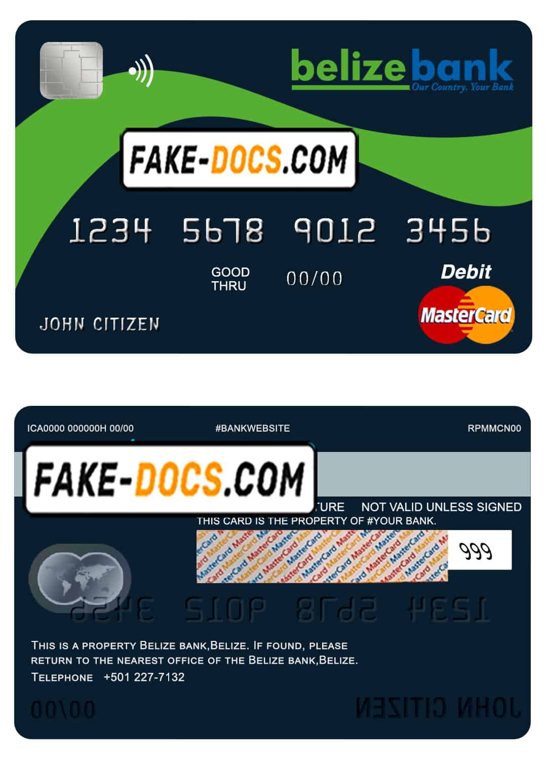 Belize Belizebank mastercard debit card template in PSD format, fully editable