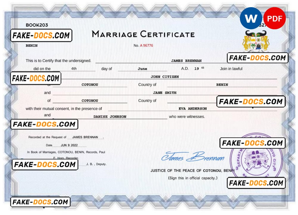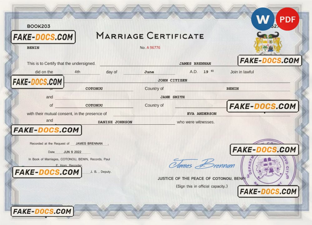Benin hotel booking confirmation Word and PDF template, 2 pages