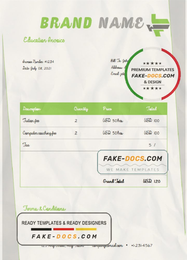 bet index universal multipurpose invoice template in Word and PDF format, fully editable