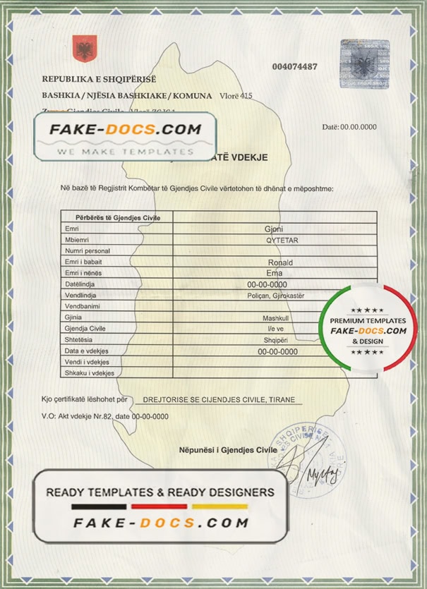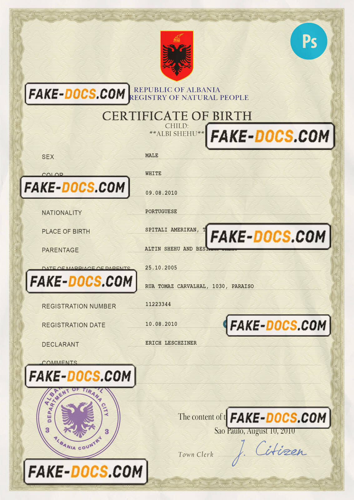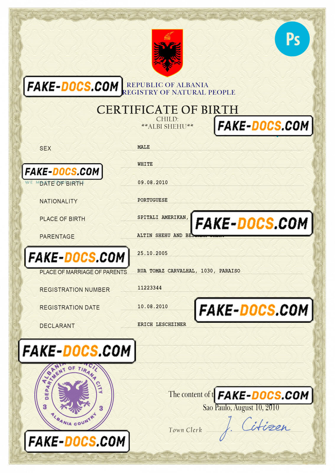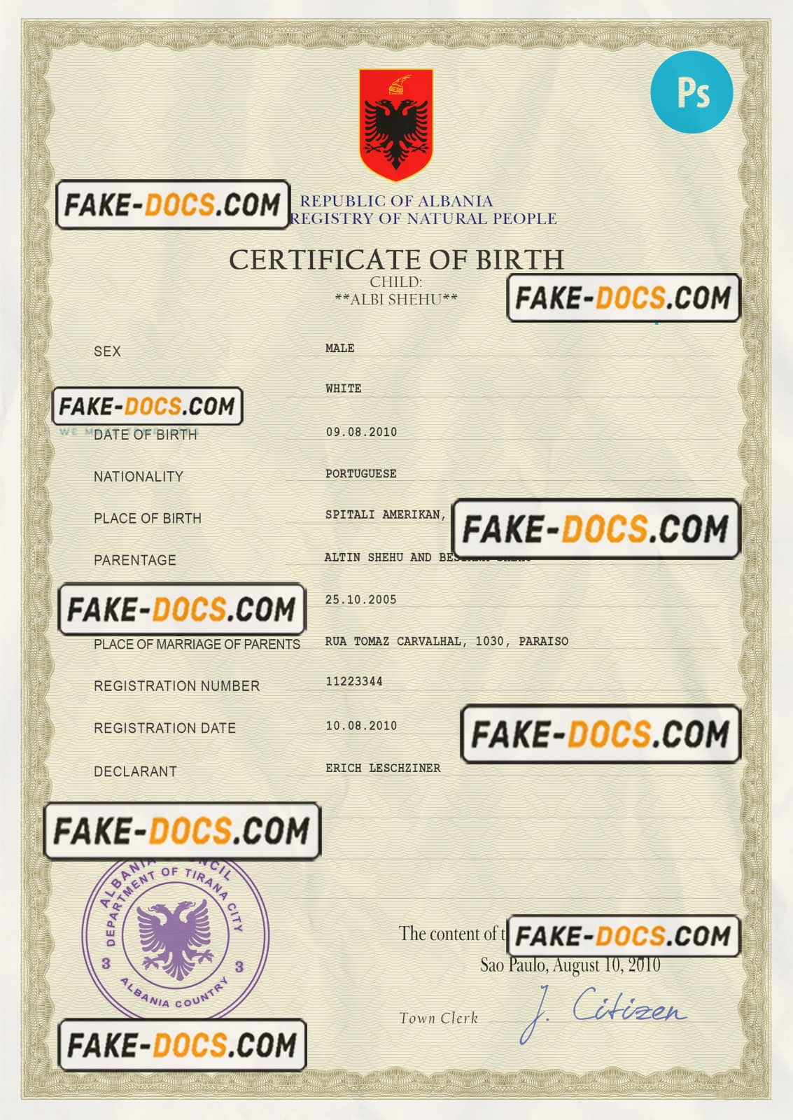 AFGHANISTAN vital record birth certificate editable PSD template, version 2