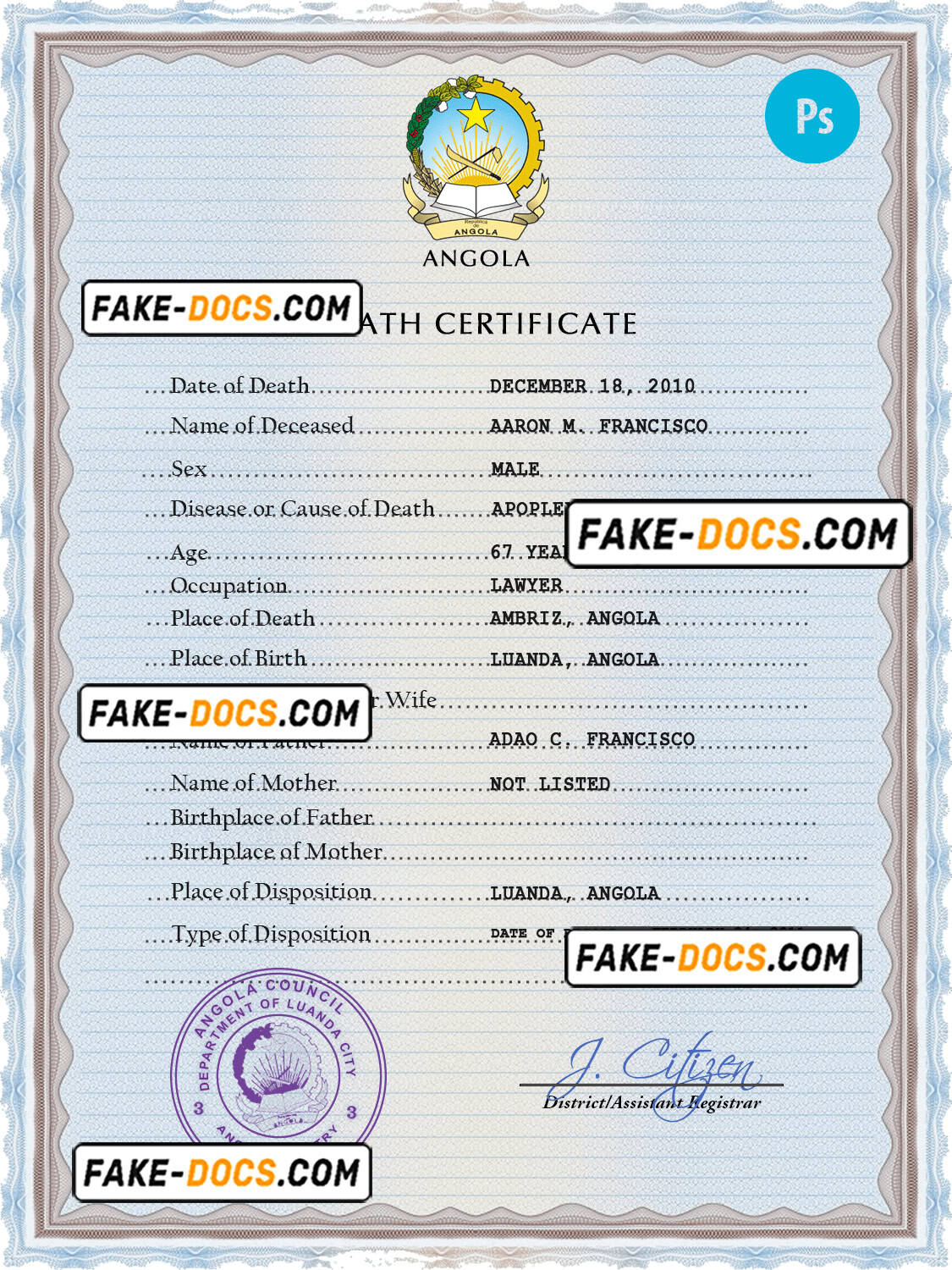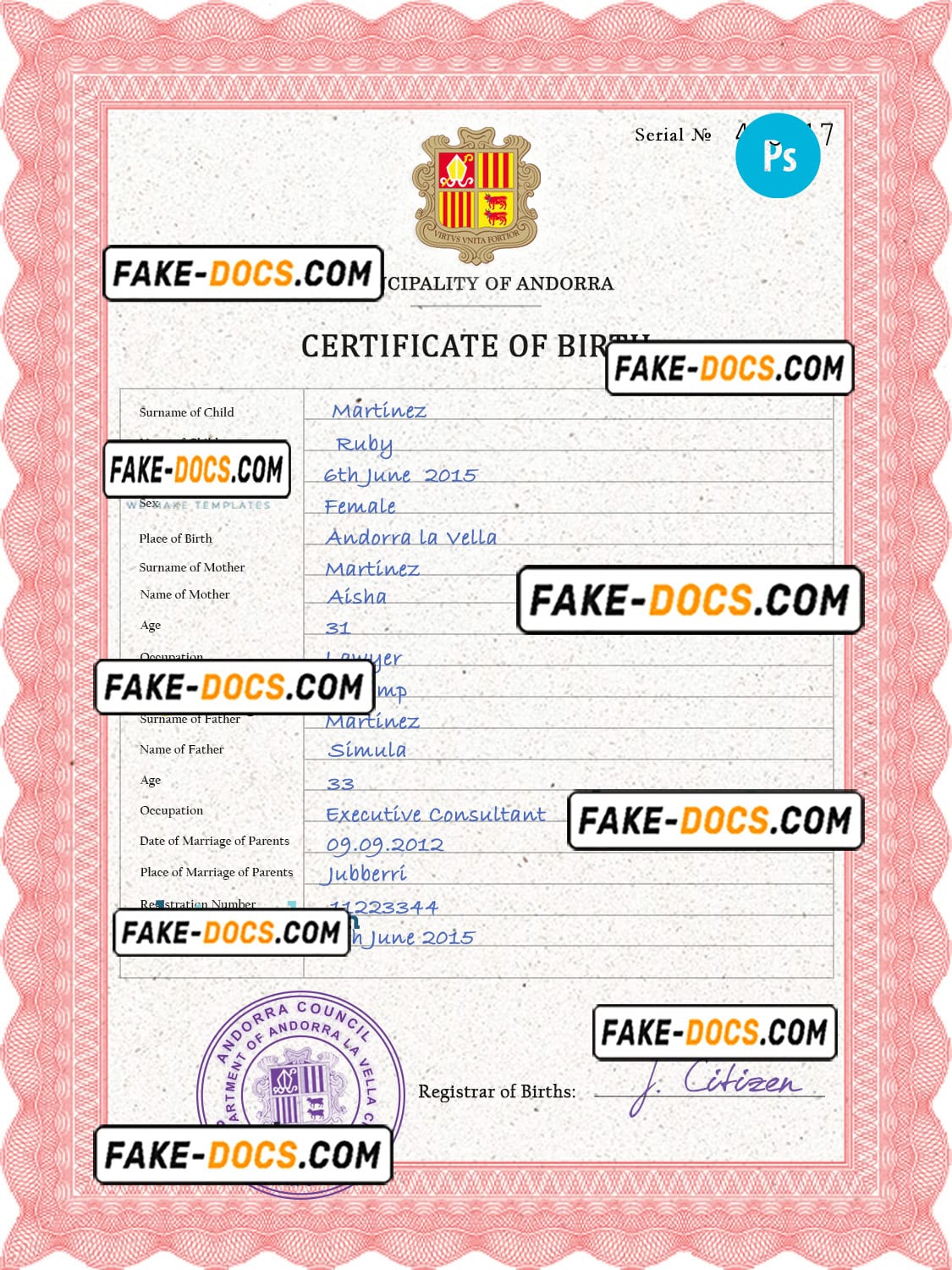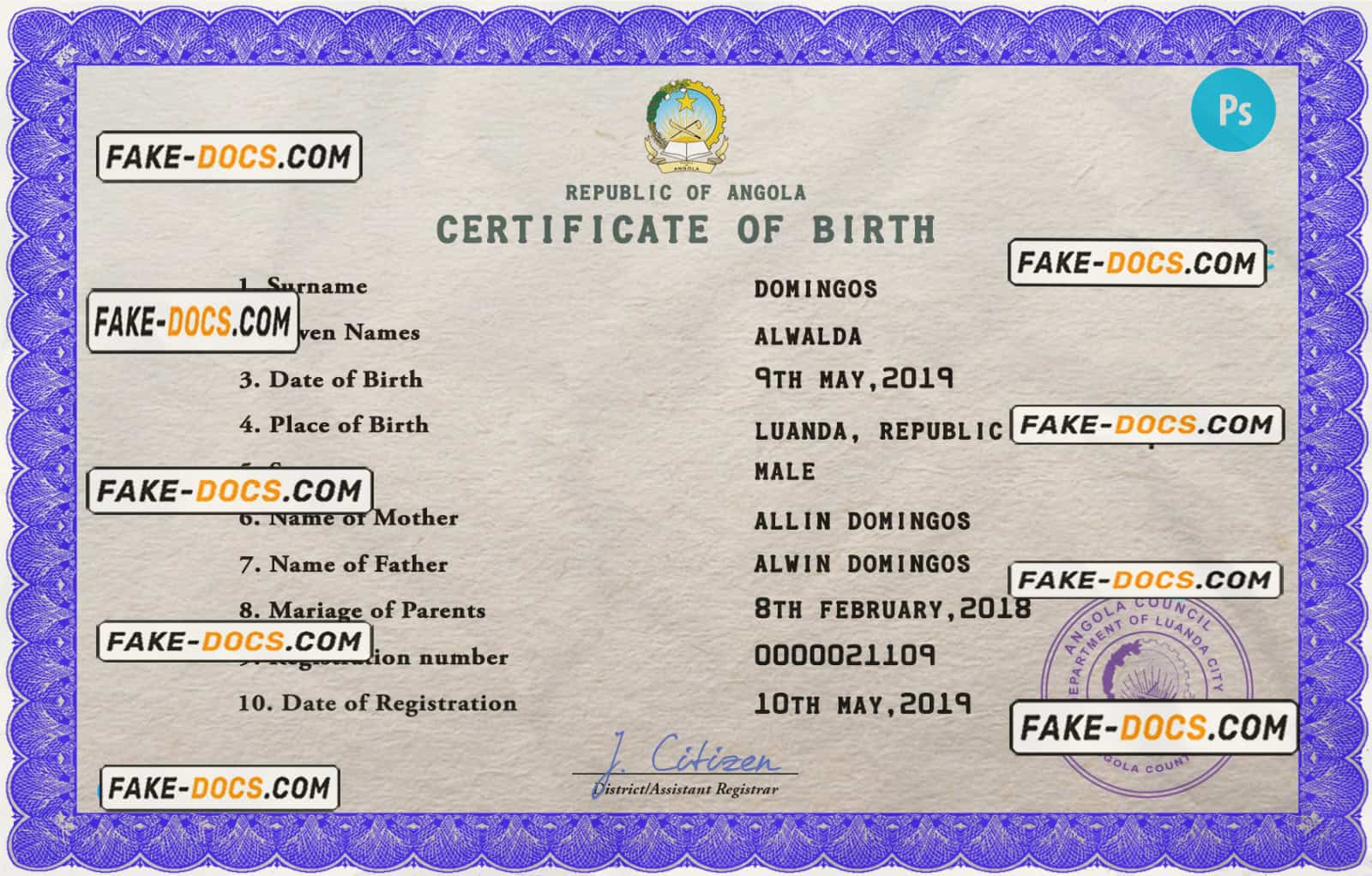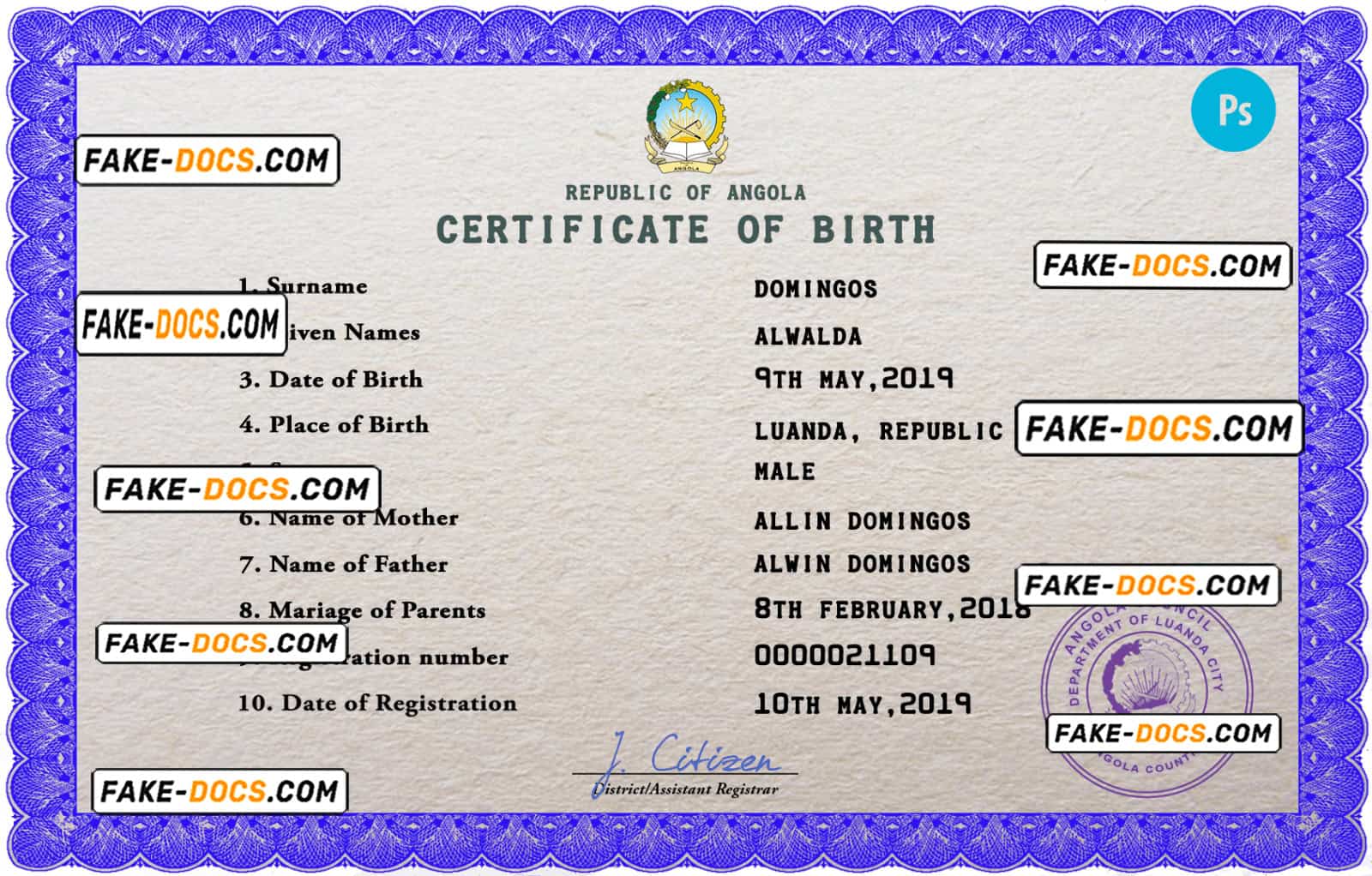 Antigua and Barbuda birth certificate PSD template, completely editable