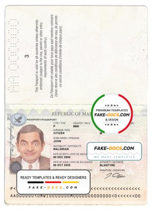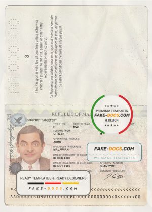 Malawi Passport psd template